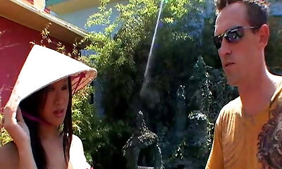 Asiatin notgeil braucht zwei Schwaenze fuer Crampie