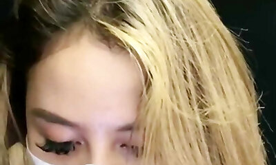 Light-haired Thai model bareback creampie on bed