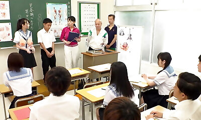 Hot Japanese teacher group sex is your lesson