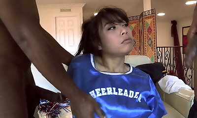 Curvy asian stunner was stretching her tempting body and then she gets pulverized by a big black man